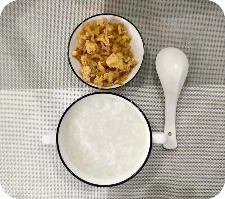 早餐:白粥+肉丝炒萝卜干鸡蛋